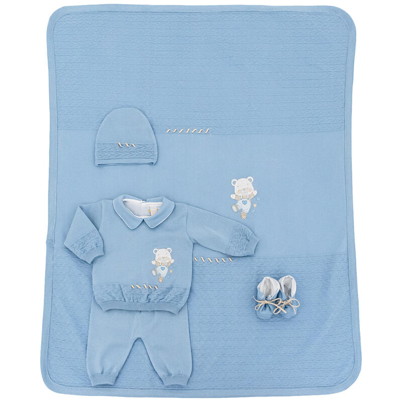IL SET COMPRENDE: COMPLETO DUE PEZZI, SCARPETTA,COPERTINA E CAPPELLINO