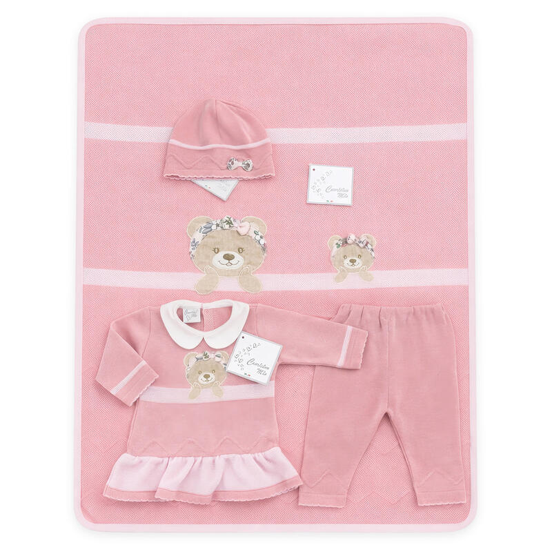 LA CONFEZIONE INCLUDE: VESTINA CON LEGGINS PURO COTONE 0-3 MESI +CAPPELLO+COPERTINA