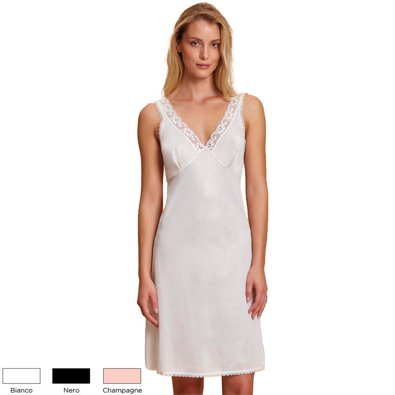 Sottoveste donna con spalla larga ed elegante pizzo, disponibile nei colori : Nero, Champagne e Bianco.