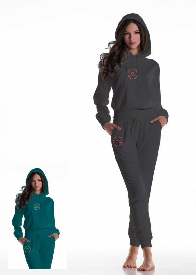 VENDITA A COFANETTO DA 8 PEZZI ASSORTITO NEI COLORI VERDE E GRIGIO SCURO E NELLE MISURE S-M-L-XL Set donna felpa non garzata, pant. con tasche