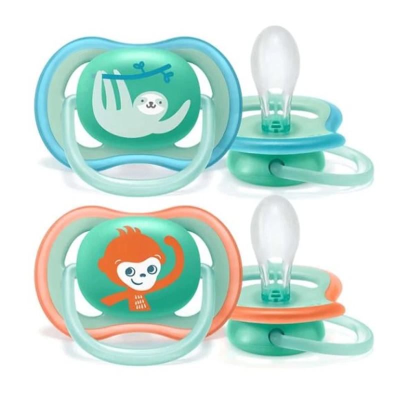 Le tettarelle,ortodontiche,piatte e simmetriche,non interferiscono con lo sviluppo naturale del palato,dei dentini e delle gengive.Tutti i succhietti della linea sono in silicone,inodore e insapore.
