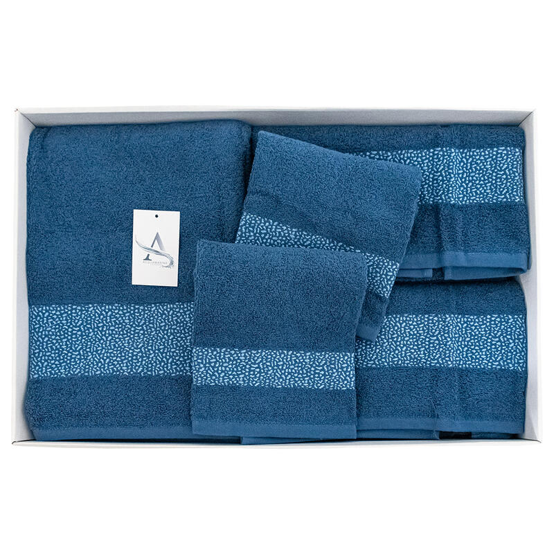 IL SET E' COMPOSTO DA 1 TELO DOCCIA CM 100X150 + 2 ASCIUGAMANI CM 65X105 + OSPITI CM 40X60