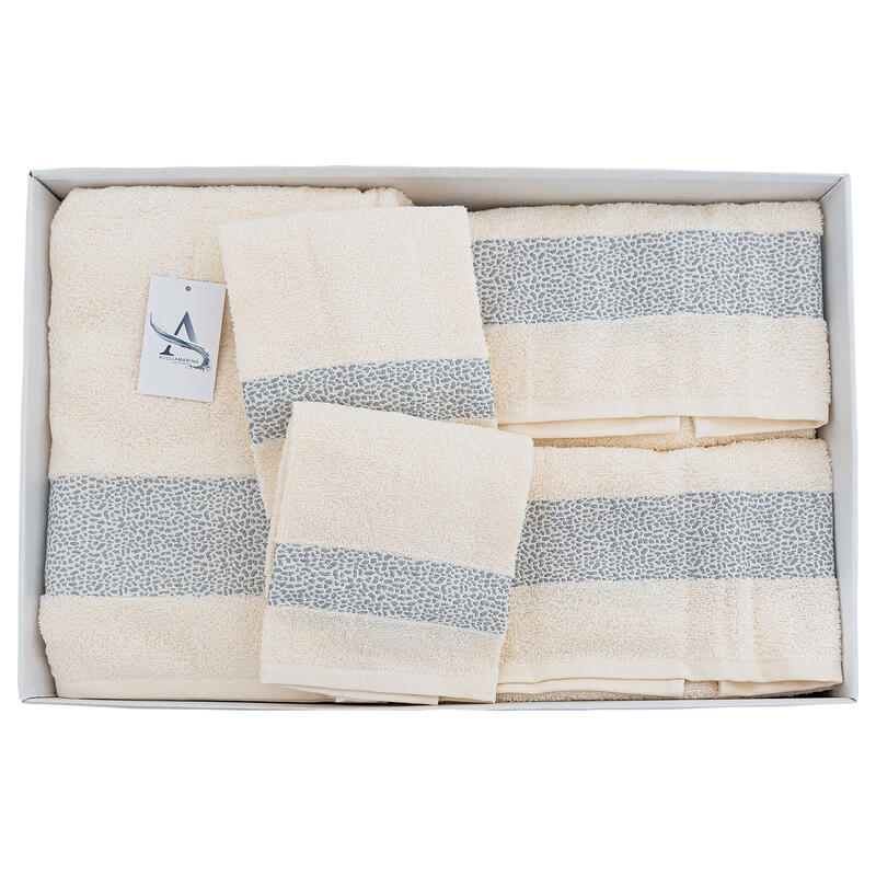 - SET 5 PEZZI SPUGNA CON 1 TELO + 2 ASCIUGAMANI + 2 OSPITI