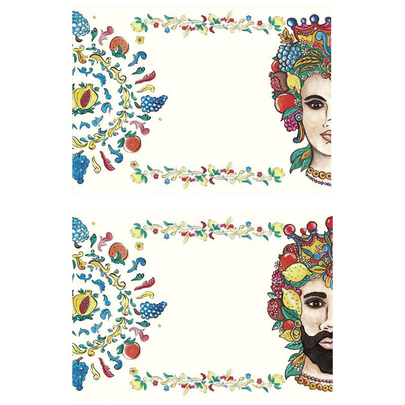 SET 2 TOVAGLIETTE UOMO-DONNA STAMPATE CM 52X38 TESTE MORO