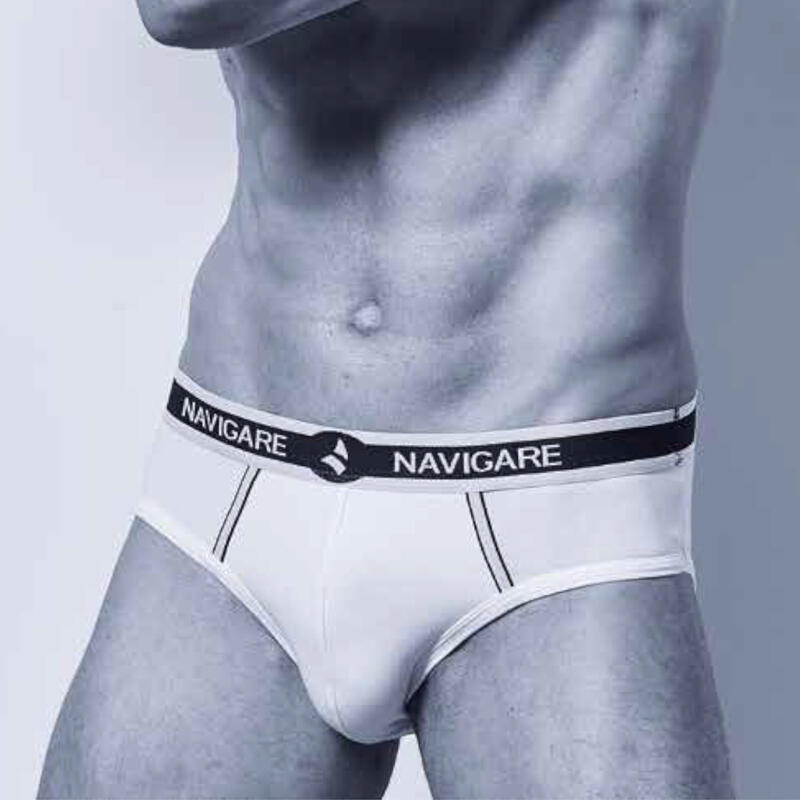 Slip uomo in morbido cotone elasticizzato con elastico logato e bande. La vaschetta da 6 capi contiene: 2 Blu Navy, 2 Nero, 1 Grigio melange,1 Bianco.