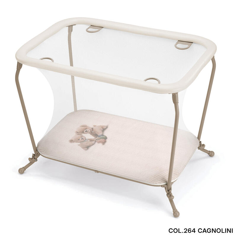 Con 4 maniglie di sostegno, corrimano imbottito e resistente ai morsi, rete antintrappolamento delle dita.Si pulisce facilmente con una spugnetta.Chiusura compatta