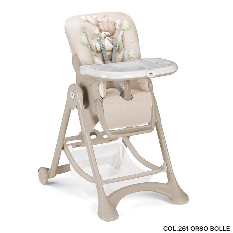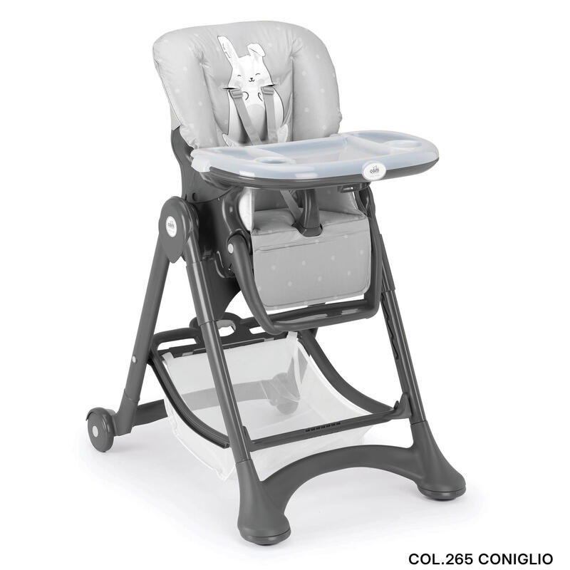 Seggiolone comodo, pratico e di qualità italiana.6 altezze, 3 inclinazioni dello schienale. movimento sincronizzato di schienale e appoggiapiedi. 2 tavolette regolabili e removibili (+ una tavoletta di sicurezza).Super compatto, chiuso sta in piedi da solo e si utilizza facilmente con una sola mano