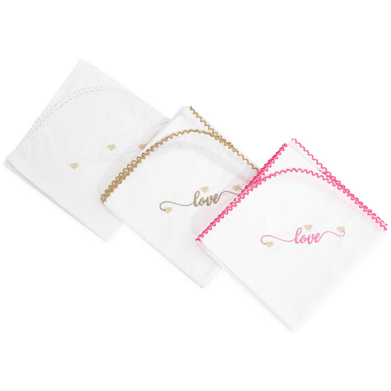 SET 3 QUADRATI DI MUSSOLA IN PERCALLE 100% COTONE