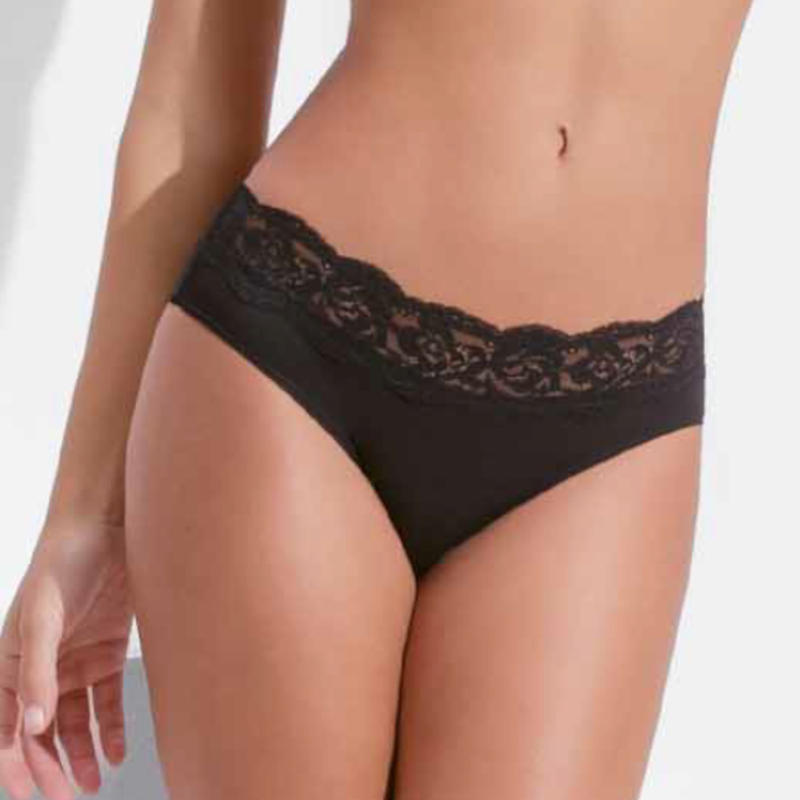 Slip Donna Diana in morbidissimo cotone elasticizzato con girovita in pizzo glamour. Ideale per chi cerca uno slip pratico e confortevole senza rinunciare ad un tocco di eleganza.